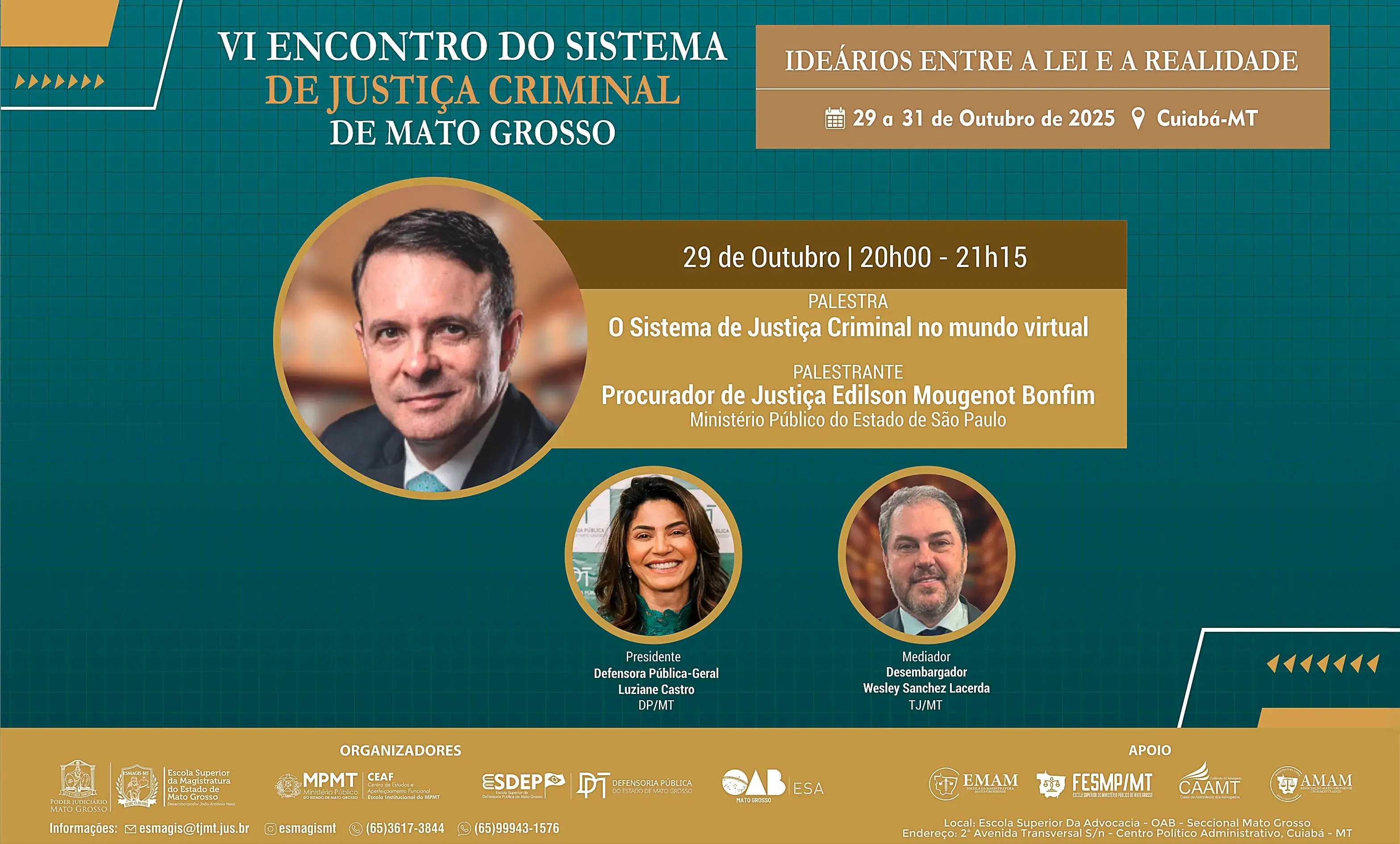 O evento é uma realização da Escola Superior da Magistratura de Mato Grosso (Esmagis-MT), em parceria com: